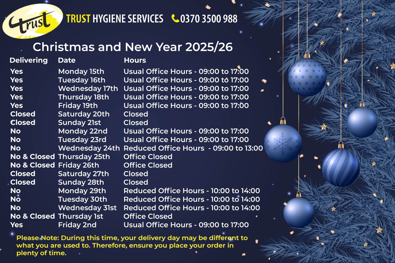 Christmas and New Year Opening Times.